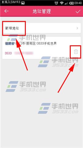 3)可以点击地址旁边的【垃圾桶】进行删除,或者点击【新增地址】,输入新的地址后点击右上角的【√】符号去添加完成。(如下图)