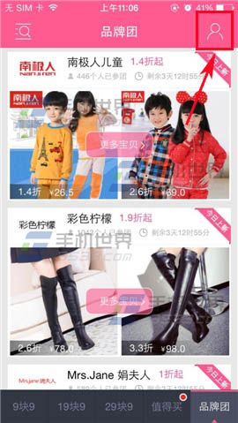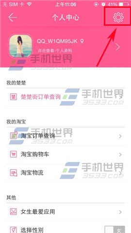 1)首先打开9块9包邮购,在右上方点击【人像】,进入界面在右上方点击【设置图标】。(如下图)