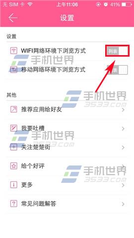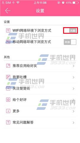 2)在WIFI网络环境下浏览方式的右边点击一下,显示大图就表示已开启大图浏览商品了。(如下图)