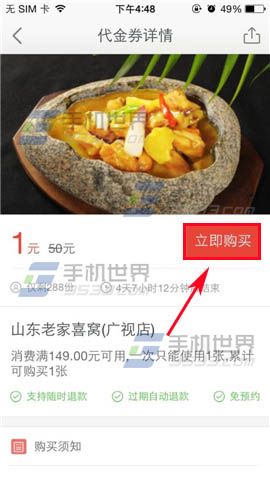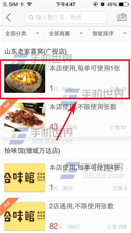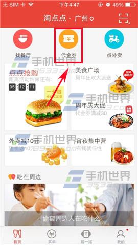 1)首先打开淘点点,在首页点击【代金券】,进入界面选择想要去的餐厅点击进入。(如下图)