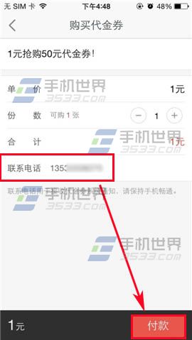 2)进入界面点击【立即购买】,然后输入联系电话,点击【付款】。(如下图)