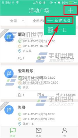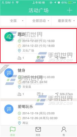 3)返回活动界面在右上方点击【√】,即可看到活动广场用户发布的活动了。(如下图)