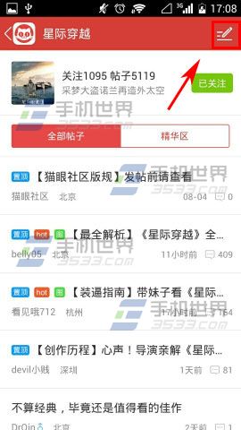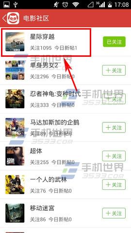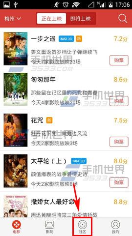 2)在界面选择一个社区分类进入(例:电影),然后在界面选择一个电影点击进入。(如下图)