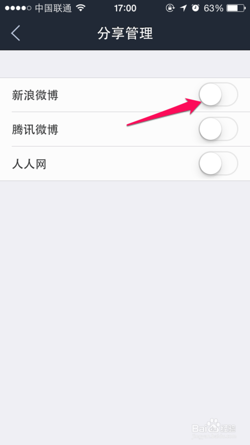 5、在这里点击自己需要进行绑定的分享,小编选择微博。