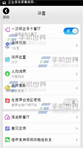 2)【一次摇出多个餐厅】是默认关闭的,把它的【开关】打开就好啦。(如下图)