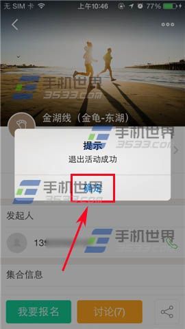 2)弹出窗口点击【退出】,即可提示退出活动成功,最后点击【确定】。(如下图)