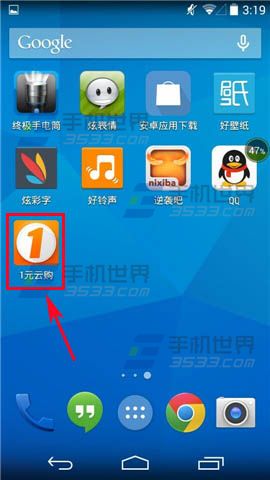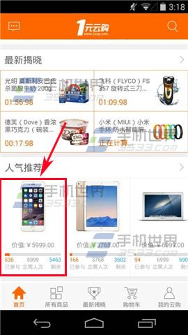 1)首先打开1元云购,进入首页选择要云购的商品。(如下图)