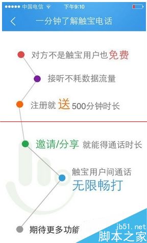 1、你邀请小A安装触宝电话APP,你们就可以在3G/4G/WiFi下永久免费通话。