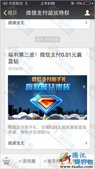 2、昨天下午推送的蓝钻活动,和投递者“微信支付游戏特权”2个活动奖励。如下图: