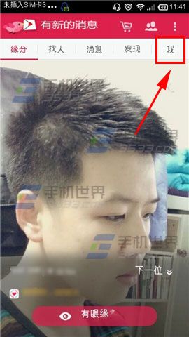 1)打开【世纪佳缘】app。点击上方的【我】。(如下图)