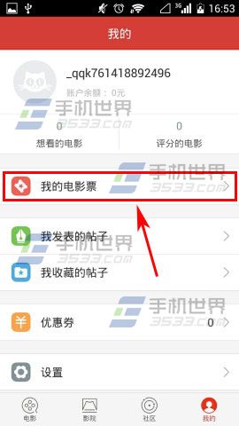 1)首先打开猫眼电影,点击【我的】,在界面点击【我的电影票】。(如下图)