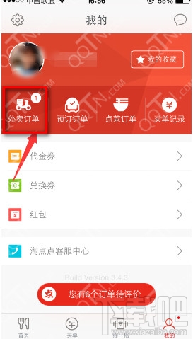 1、当大家提交订单以后,在付款的时候点击否,然后退出来可以看到外卖订单,点击进入;
