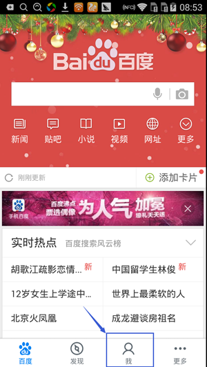 2、进入百度搜索页面后,点击下方的“我”如图所示: