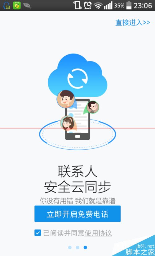 1、360免费电话下载安装后,打开软件进入使用前宣传画面,99999分钟免费拨打电话时长啊,激动中。。。点击“立即开启免费电话”。