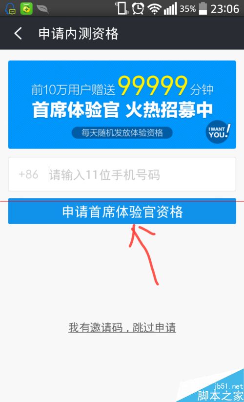 2、来到申请内测资格界面,前10万用户嘛,输入手机号点击申请。