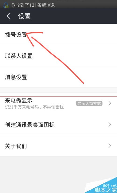 6、里面针对前看到的拨号、联系人、消息分别做了设置选项。下面一个一个来看看吧,点击“拨号设置”。