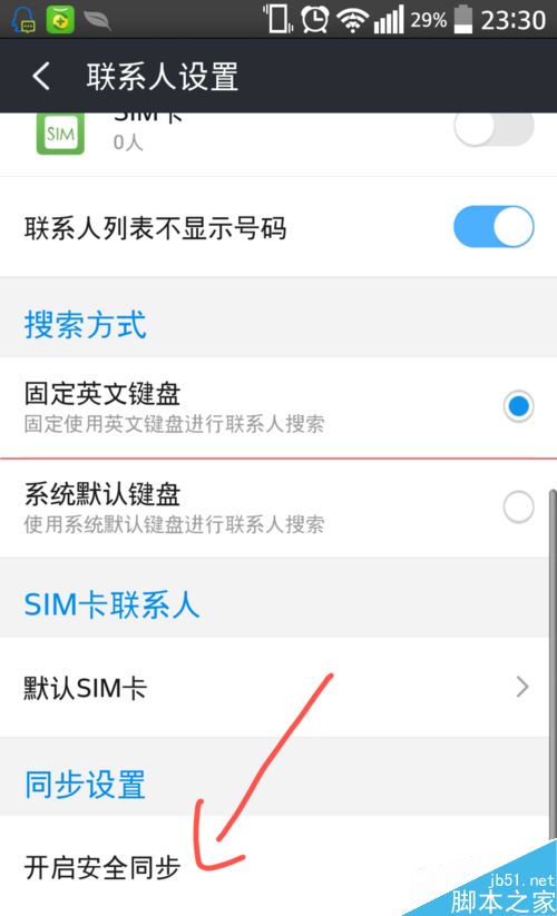 9、在联系人设置中,还有一个需要注意的功能是开启安全同步,点击可以将你的联系人同步到360云端。