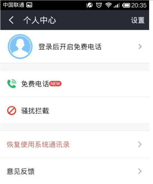 5、在个人中心中还要注意必须让“开启免费电话功能“处于选中状态的。