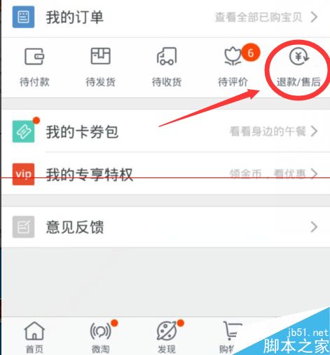 2、登陆成功后,再点击我的淘宝-退款/售后如下图所示操作。