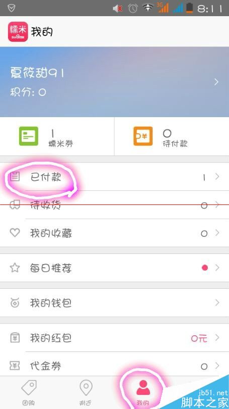 1、打开百度糯米,选择“我的已支付”。