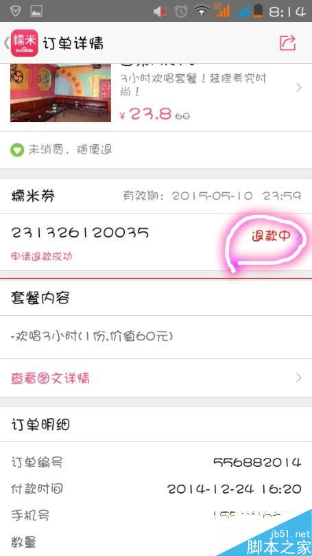 2、选择要退款的团购,直接进入。