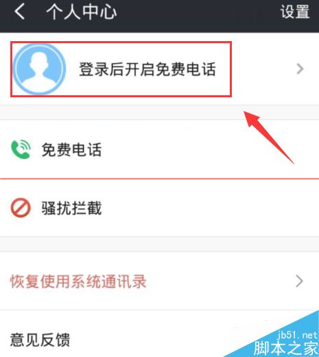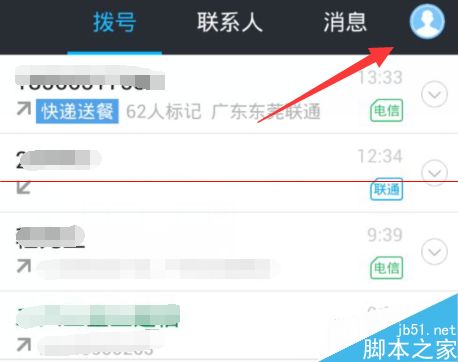 1、手机上安装好360免费电话然后,再点击右上角处的人头图标处。