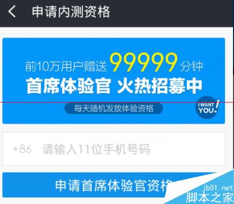 3、输入你的手机号码,然后再点击申请首席体验官资格