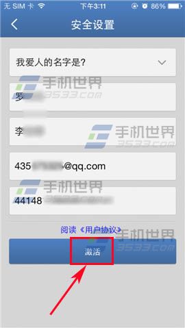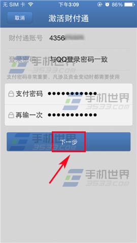 3)用户登录的QQ号就是财付通的账号哦,然后输入支付密码两遍,点击【下一步】,在界面上方选择一个问题回答,然后输入答案、再输入用户姓名和身份证号码,点击【激活】。(如下图)