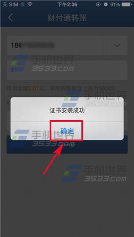 3)系统会发短信到用户绑定的手机号,输入验证码点击【确认】,再点击【确定】即可安装证书成功。(如下图)