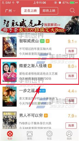 1)首先打开猫眼电影,在界面选择要查看的电影点击进入。(如下图)