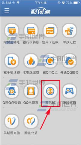 1)首先点击【手机财付通】,在界面点击【双色球】。(如下图)