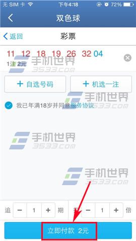 3)进入界面可以对投注号码追期买,也可以加注投倍,点击【立即付款】,在界面输入财付通支付密码,最后点击【确认支付即可】。(如下图)