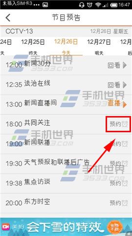2)选择一个自己喜欢的频道,进去后可以看到节目预告,点击还没有开播的节目右边的【预约】就可以啦。(如下图)