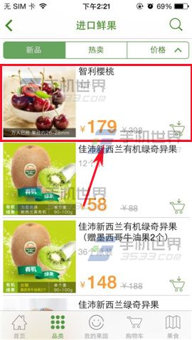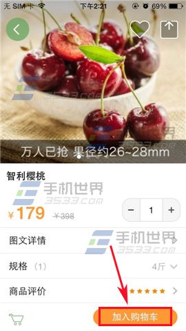 2)进入界面点击【加入购物车】即可添加到购物车,返回界面点击【购物车】即可查看水果。(如下图)