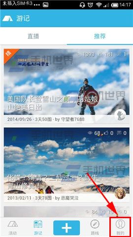 1)打开【徒步去旅行】,点击右下角的【我的】。(如下图)