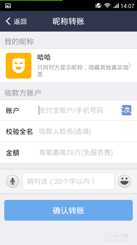 输入你想取的昵称,点击保存。收款方将只能看到你的昵称,而不会泄露你的其他信息。