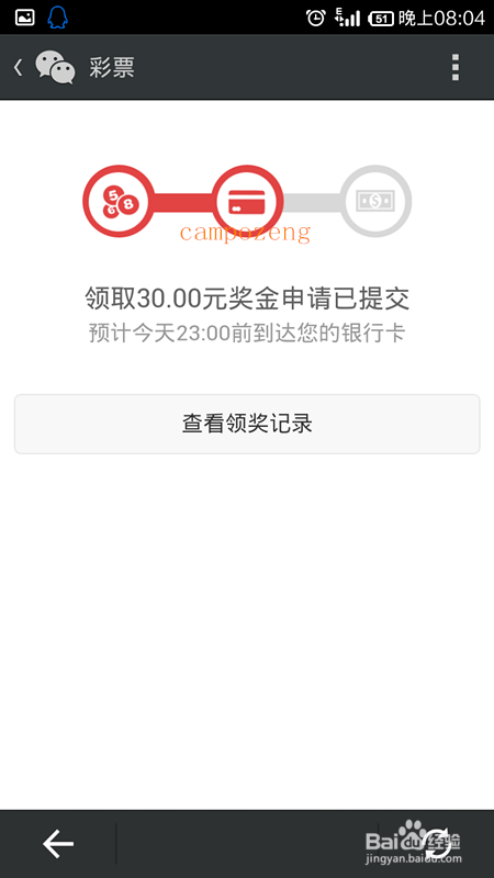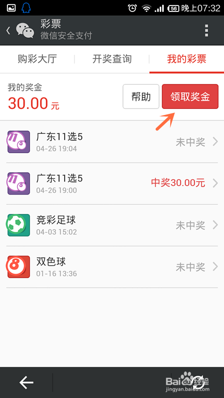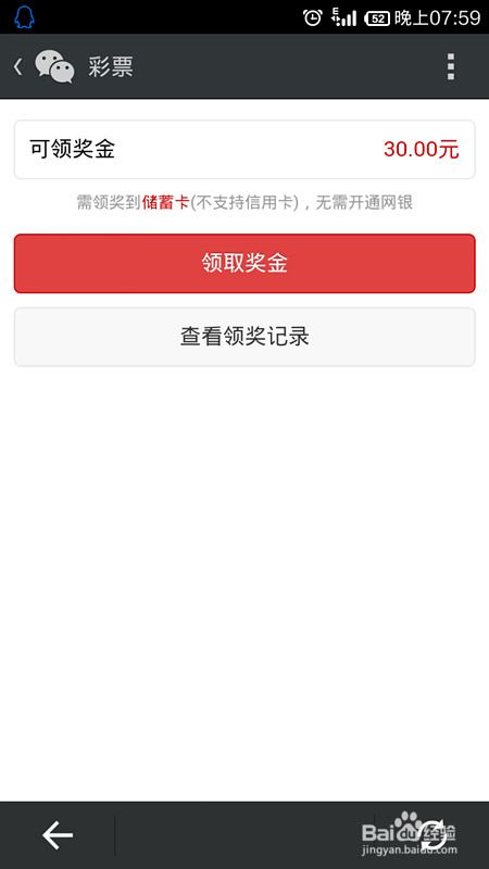 注意:第一次领奖要添加领奖用的银行卡,领奖只能用储蓄卡,信用卡不支持