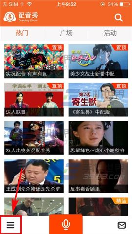 1)首先打开配音秀,在界面左下方点击【三横】,弹出窗口点击【用户账户名】。(如下图)