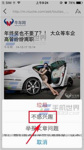 2)弹出窗口点击【不感兴趣】即可删除话题,而且也会减少推荐类似内容。(如下图)
