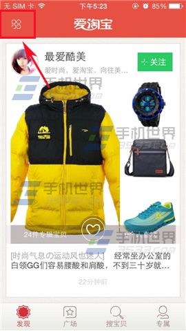 1)首先打开爱淘宝,在界面左上方点击【四个小正方形】。(如下图)
