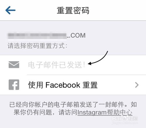 2、我是用邮箱来注册的 Instagram 账号,所以这里选择用邮箱来找回密码。如果你是用 Facebook 的话,请选择 Facebook