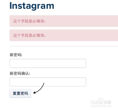 7、随后会打开重置 Instagram 密码的页面,输入二次新密码,点击“重置密码”按钮即可。