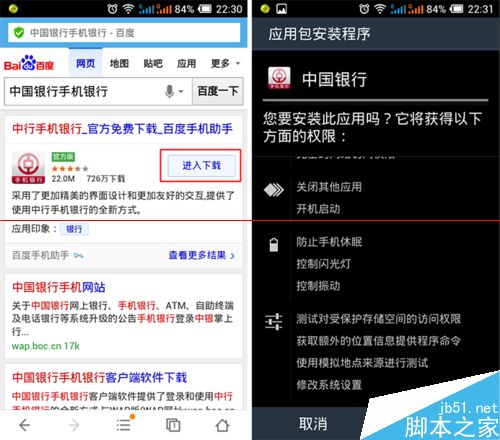 1、首先我们百度手机助手、或其他正规途径下中国银行手机版,然后安装到手机内