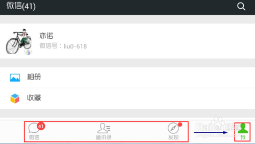2、打开微信,从首页面切换到【我】,如图所示,在页面下方有一个导航栏,这个都应该清楚吧。