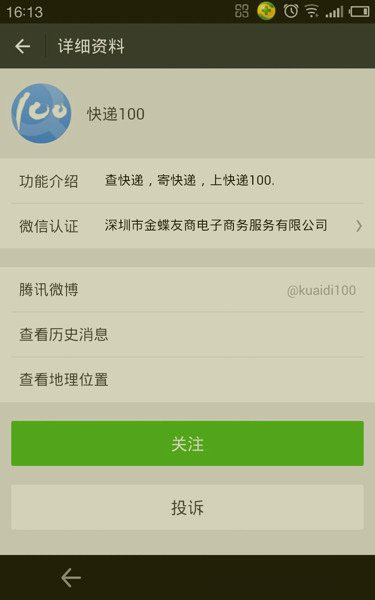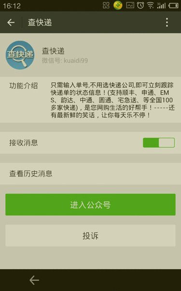 实际上你只要关注查快递的微信公众账号就可以了。比如快递100或者查快递。