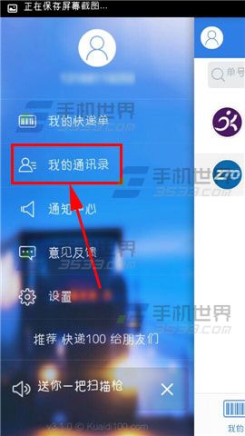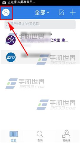 1)打开【快递100】,点击左上角的【人像】图标。(如下图)