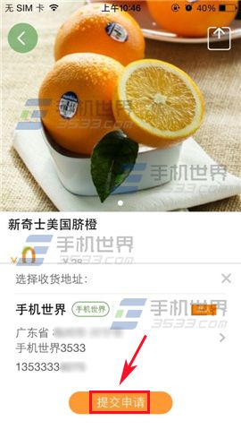 3)在界面选择收货地址点击一下,然后点击【提交申请】。(如下图)