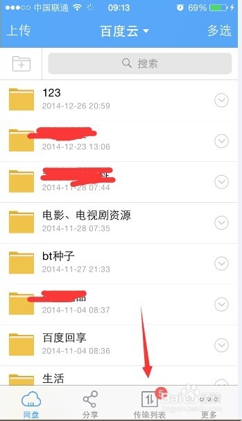 首先进入手机百度云的主页面。看到这里是我们云盘里的文件。