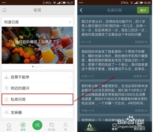 5、私密问答。在这里面你可以随便问你不敢或者不好意思问别人的问题,都会有热心的人给你解答,在这里你丝毫不需要害怕,因为你是以匿名的方式在这里发表的内容,没有人知道你是谁,你也不知道别人是谁。所以不用害怕。