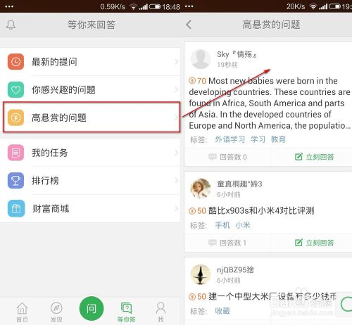 9、最高悬赏的问题。这里有别人出高财富值来提问,如果你的问题获得了他的采纳,那么别人提问题付出的财富值,将会给你。财富值可以再商店里换礼物的呦。